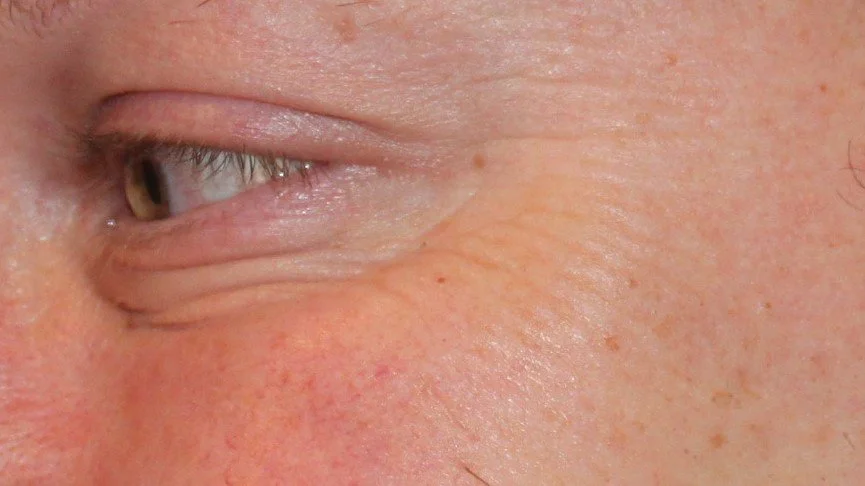 Right crow’s feet area pre-treatment (first image) and 2 weeks post-treatment (second image)