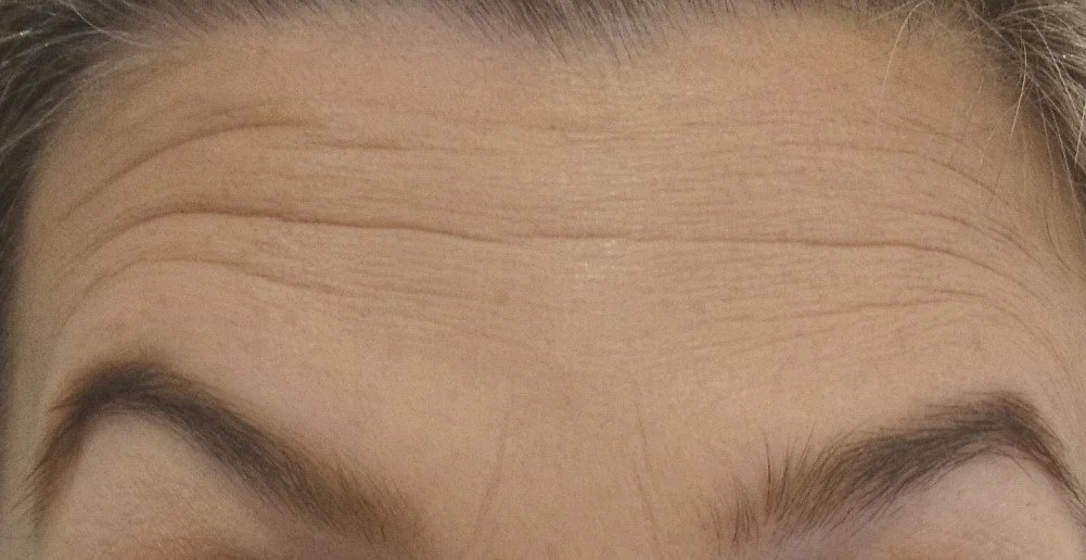 Forehead area in maximum surprise pre-treatment (first image) and 2 weeks post-treatment (second image)