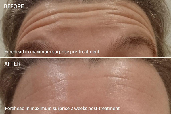 Anti-wrinkle treatment can give particularly nice results when used in the upper third of the face, around the eyes, and forehead areas. A more refreshed, youthful appearance is achieved without the tell-tale “frozen” look. Below are some before and after photos of some of my work in these areas. See the “Gallery” section for more photos.